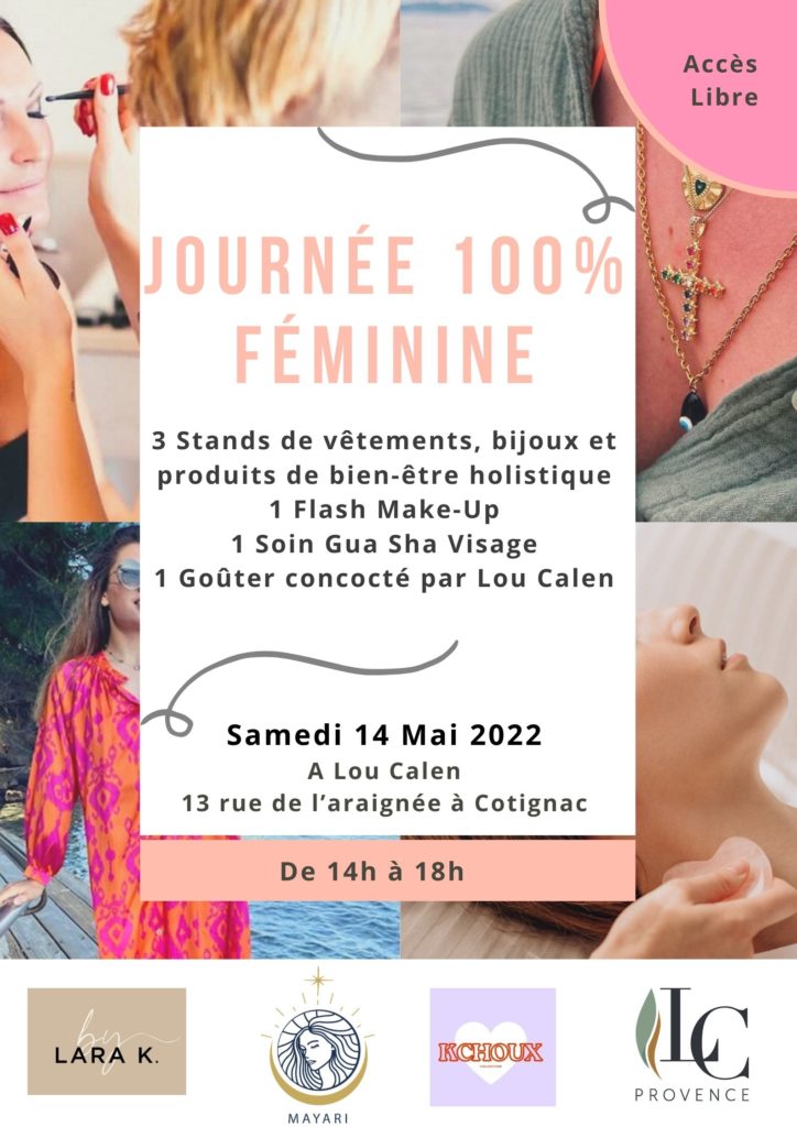 Mayari, By Lara K et Kchoux vous donnent rendez-vous à Lou Calen pour une après-midi dédiée aux femmes, le samedi 14 mai entre 14h et 18h. Trois marques créées par trois entrepreneuses nomades qui sillonnent le Var à la rencontre des habitantes sur les marchés. Au programme : un stand de vêtements, un stand de bijoux et un troisième de produits de bien-être holistique. Elles vous proposeront aussi à prix réduit : un soin Gua Sha pour le visage et un flash make-up, tout cela complété par un goûter made in Lou Calen.