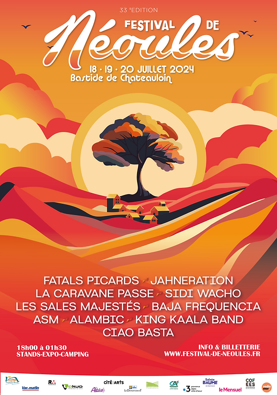 Le Festival de Néoules fait son grand retour avec une impressionnante liste d’invités, parmi lesquels Fatals Picards, Jahneration, La Caravane Passe… et bien d’autres encore. Depuis sa création en 1991, ce festival n’a cessé de marquer sa place dans le paysage musical. Cette année ne fait pas exception, avec une programmation à la fois diverse et variée. Considéré comme l’un des plus anciens festivals de musique du Var, le Festival de Néoules est fier de vous accueillir chaque année dans son cadre idyllique sur le magnifique site de la Bastide de Châteauloin.