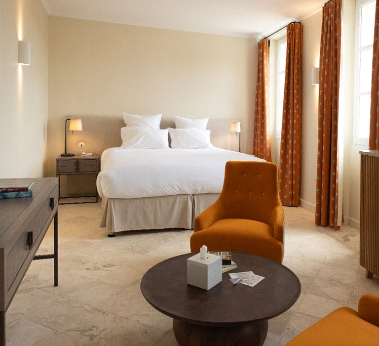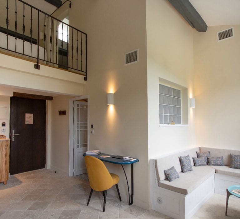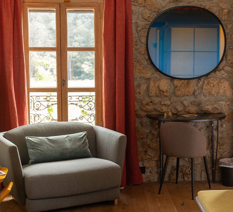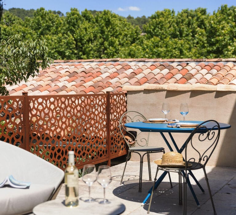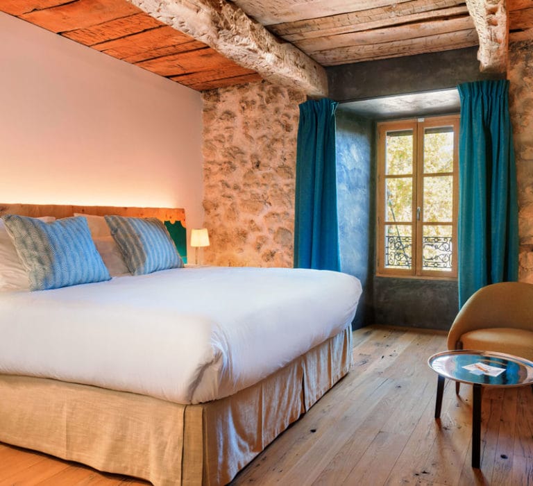 Le mélange de matériaux anciens et de mobilier moderne confère un charme intemporel à ces chambres au confort irréprochable. De plus, elles bénéficient d’une vue imprenable sur Cotignac.