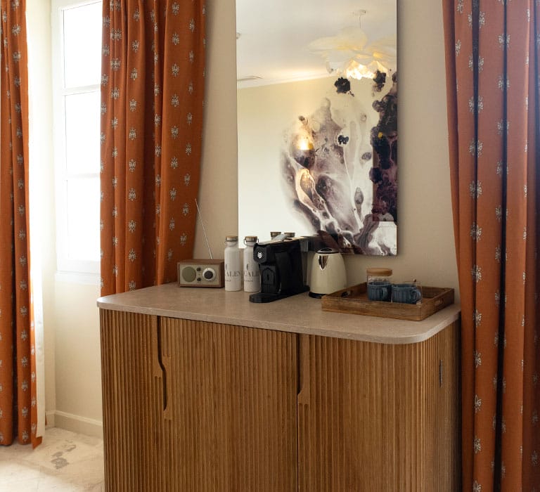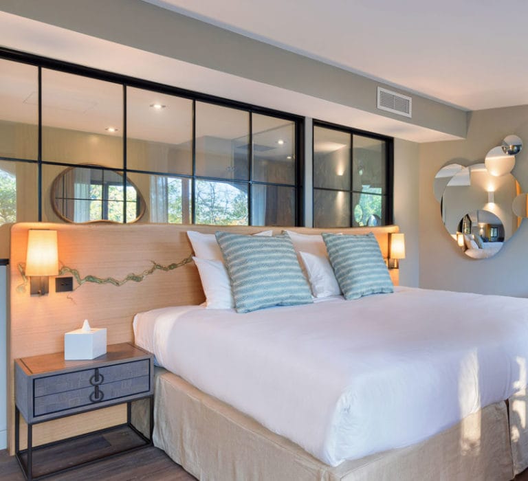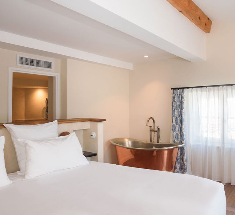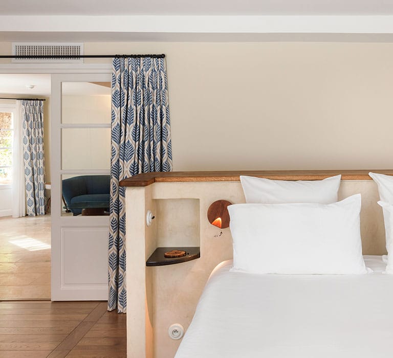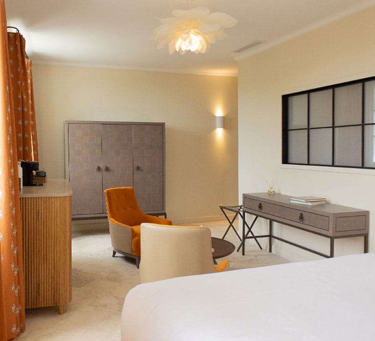 Elle est la star des suites de l’hôtel, dont chaque recoin a été façonné avec soin pour vous faire vivre une immersion totale dans l’esprit Lou Calen. Sa chambre baignée de lumière et sa terrasse suspendue sur le domaine face aux jardins verdoyants, seront le théâtre de vacances inoubliables.