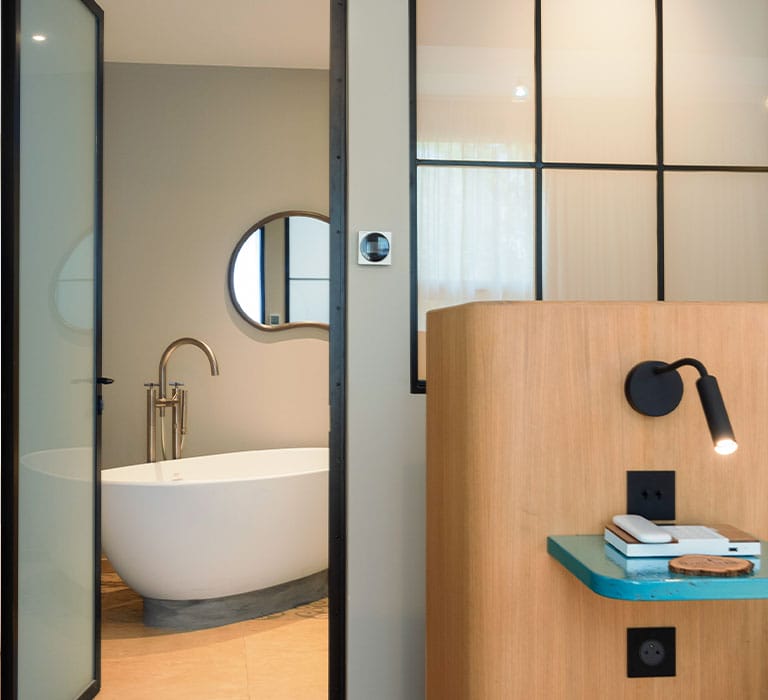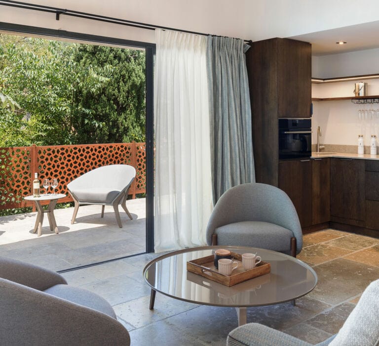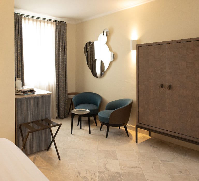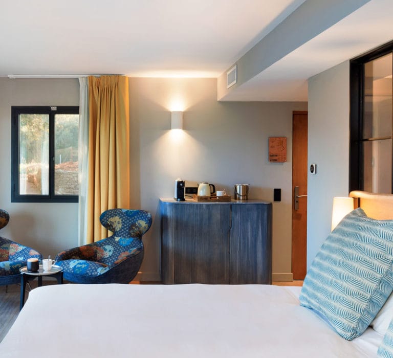 Modernes et empreintes d’élégance, parées de marbre et de belles menuiseries, les chambres Cassole se prolongent sur des terrasses avec vue sur le massif des Maures.
