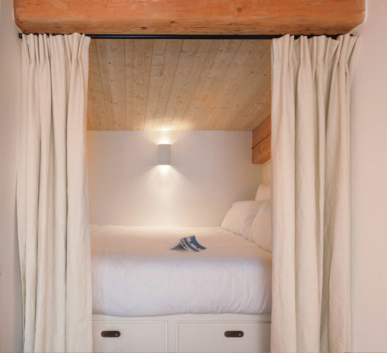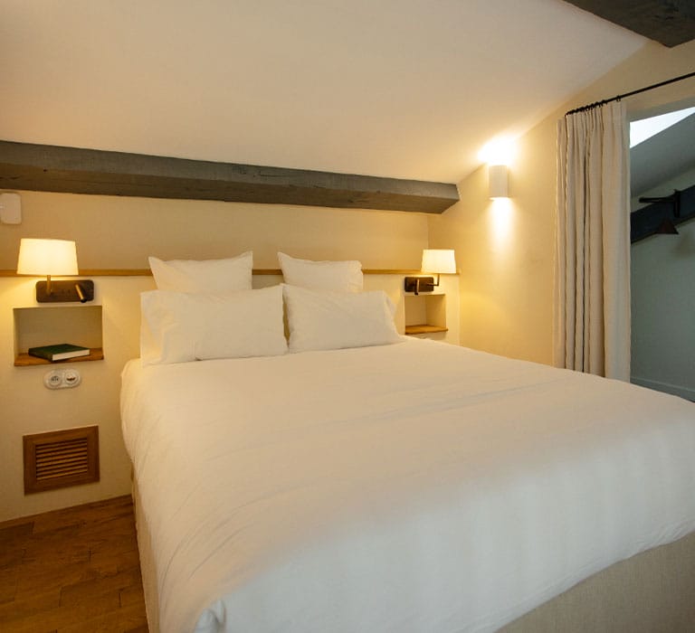 Elle était la chambre préférée du célèbre chanteur, client régulier de Lou Calen dans les années 70 à 80 ! Il y aura même passé sa nuit de noce lors de son mariage à Cotignac. 40 ans plus tard, cette jolie chambre en mezzanine a été repensée avec des matériaux naturels et sobres afin de conserver son charme d’antan.