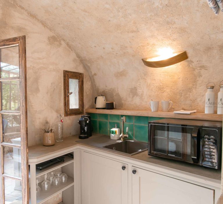 Spectaculaire, le Pigeonnier est la plus envoutante suite du domaine. Le caractère du bois et de la pierre, dans une forme toute en rondeur surprennent dès l’arrivée. Sa terrasse et ses différentes vues sur les jardins et le rocher de Cotignac rendent l’expérience exceptionnelle.