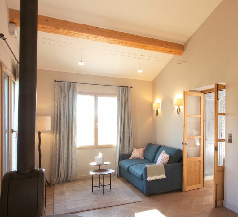 Cette suite spacieuse est un véritable cocon de bien-être. Une décoration aux couleurs tendres, un poêle à bois, une douche Hammam, et surtout, une vue panoramique sur la falaise de Cotignac, à contempler sans modération depuis sa belle terrasse qui surplombe le domaine.