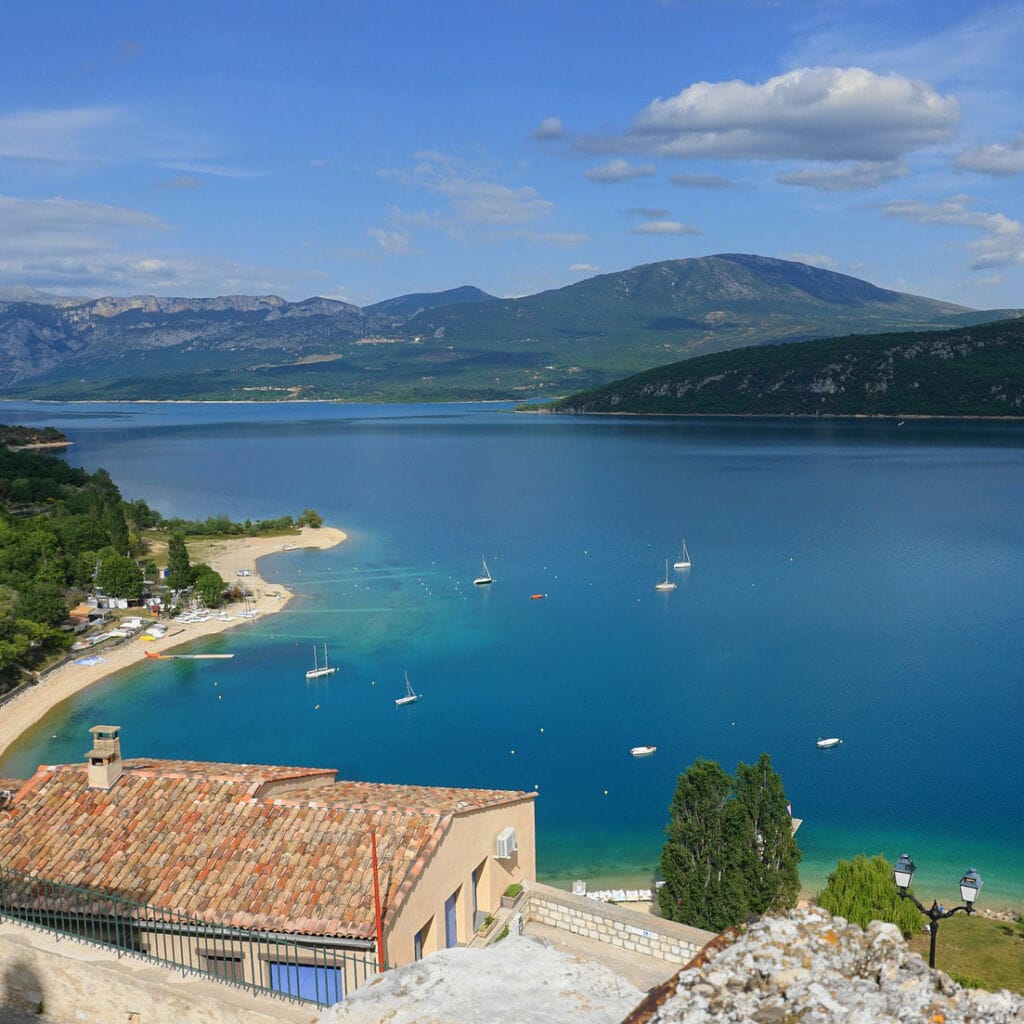 Au petit matin, prenez la direction de Bauduen, petit village médiéval construit autour de la colline du Défens, au bord des rives cristallines du lac de Sainte-Croix. Une fois sur place, laissez-vous flâner dans les ruelles pavées imprégnées de plusieurs siècles d’histoire. Vous croiserez deux églises, Saint-Pierre et Saint-Paul, ainsi que les ruines d’un château médiéval et sa tour sarrasine. Grimpez jusqu’au sommet du village pour embrasser du regard une vue panoramique époustouflante sur les eaux turquoise et les collines environnantes. Unique en France, ce grand lac est le terrain de jeu idéal pour les amateurs de sports nautiques en quête de sensations nouvelles et de moments de pure liberté. Pour clore la matinée, rendez-vous au petit port de Bauduen pour une balade sur le lac en bateau électrique, canoë ou pédalo. Vous trouverez toutes les infrastructures nécessaires, et pourrez même prendre un cours de planche à voile.